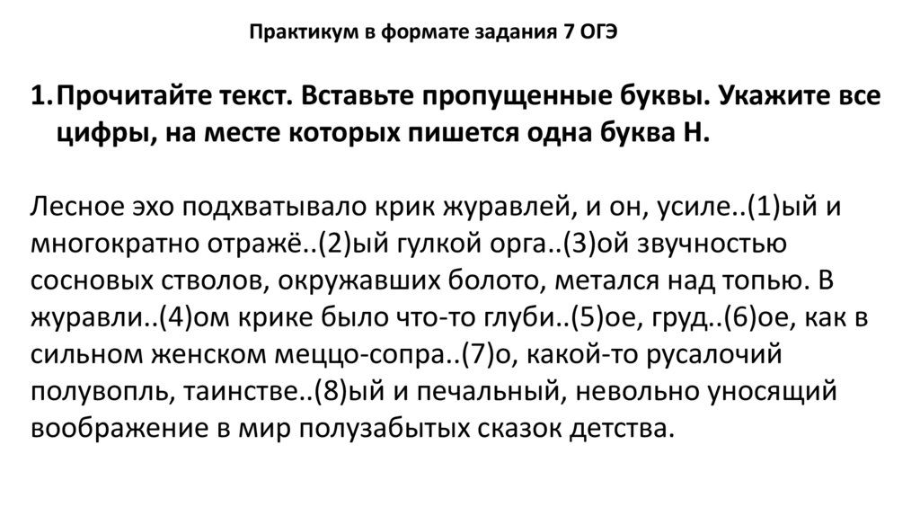 Практикум в формате задания 7 ОГЭ1.Прочитайте текст. Вставьте пропущенные буквы. Укажите все