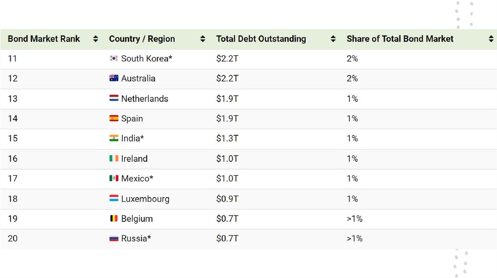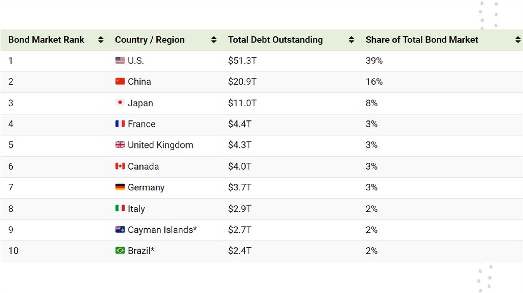 • Суммарная стоимость всех облигаций вмире составляет больше $133 трлн,