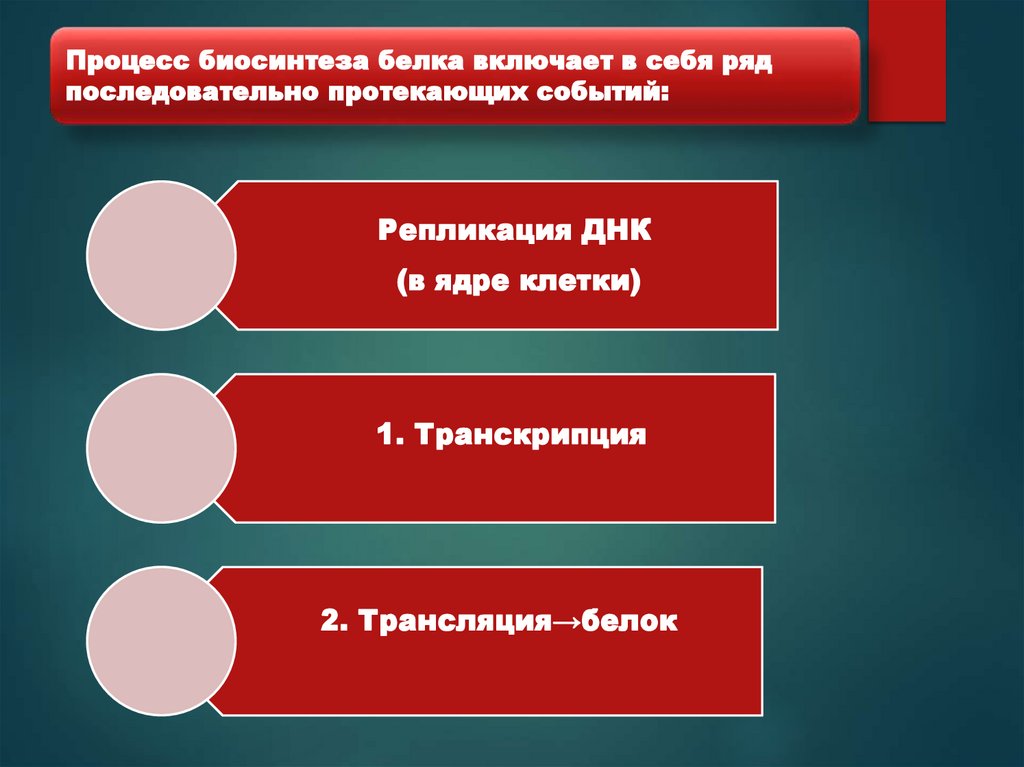 Процесс биосинтеза белка включает в себя рядпоследовательно протекающих событий: