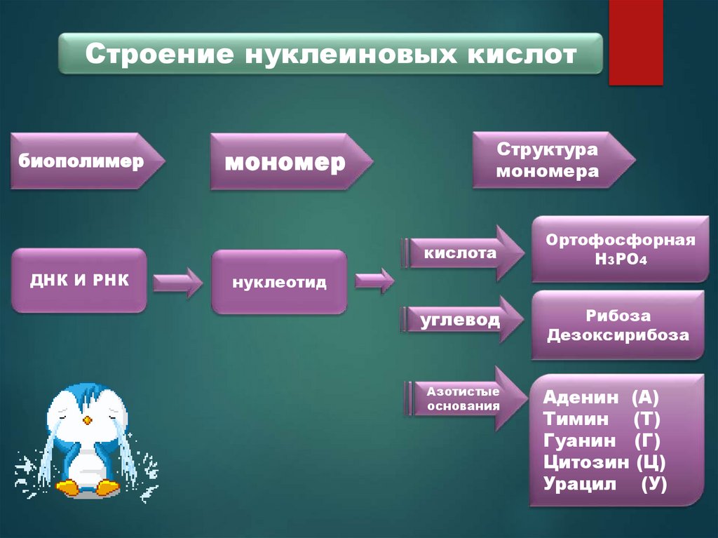 1. Принцип КОМПЛЕМЕНТАРНОСТИКоличество аденина равно количеству тимина,