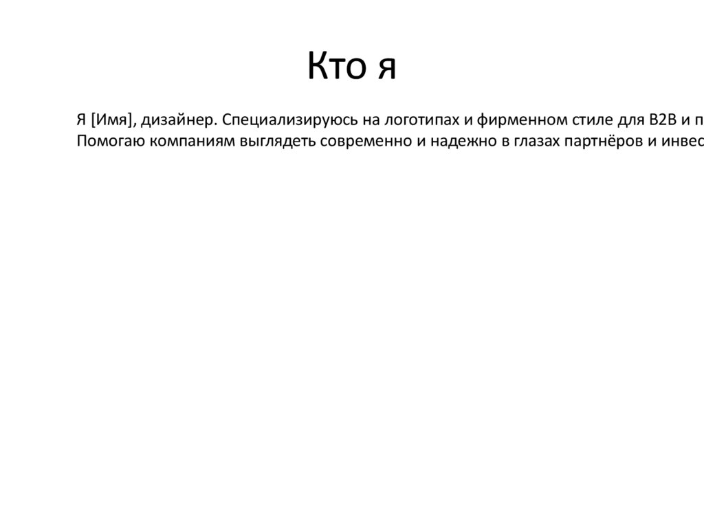 Кто яЯ [Имя], дизайнер. Специализируюсь на логотипах и фирменном стиле для B2B и пр