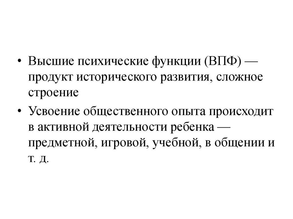 • Высшие психические функции (ВПФ) —продукт исторического развития, сложное