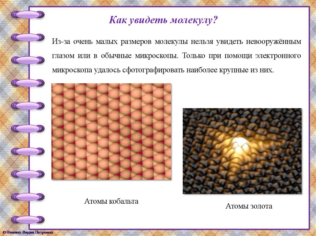 Как увидеть молекулу?Из-за очень малых размеров молекулы нельзя увидеть невооружённым