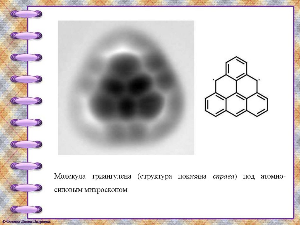 Молекула триангулена (структура показана справа) под атомносиловым микроскопом23.