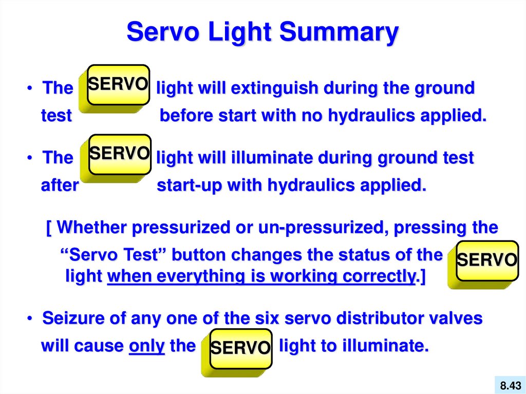 Servo Light Summary• The SERVO light will extinguish during the ground