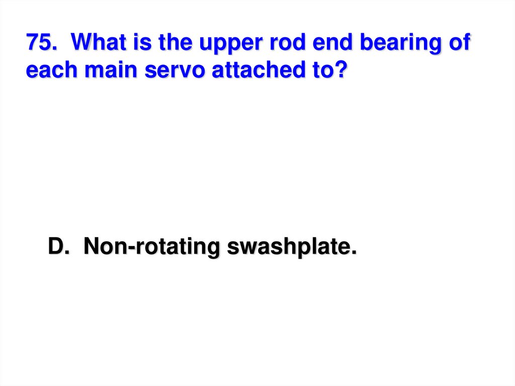 75. What is the upper rod end bearing ofeach main servo attached to?