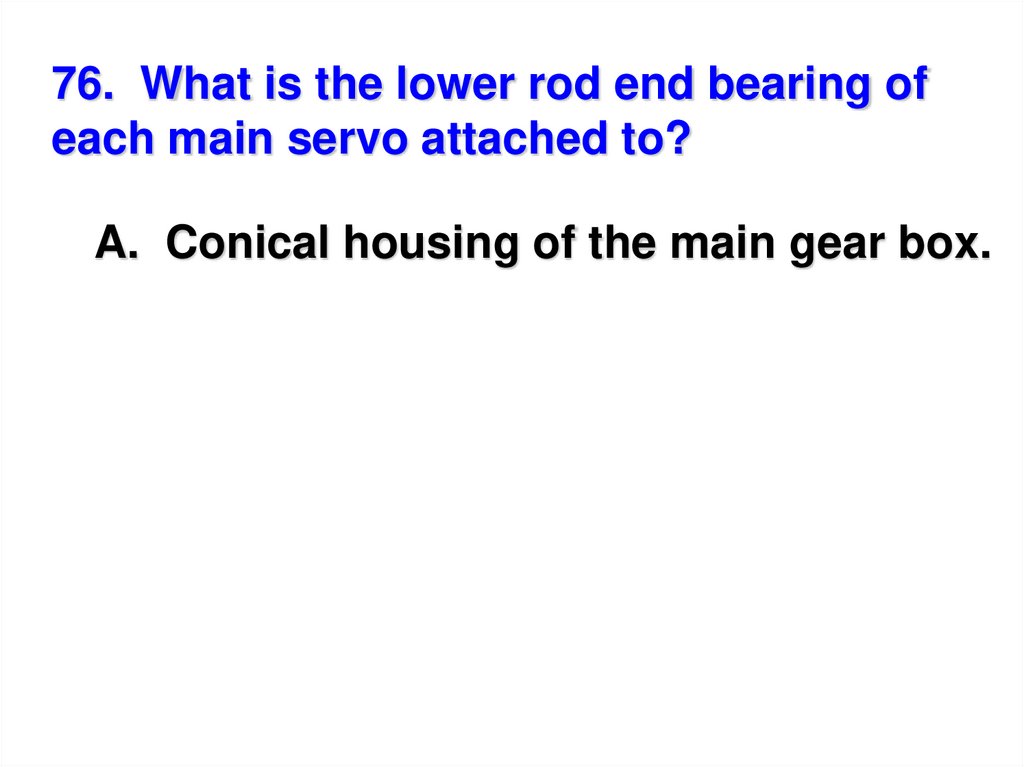 76. What is the lower rod end bearing ofeach main servo attached to?