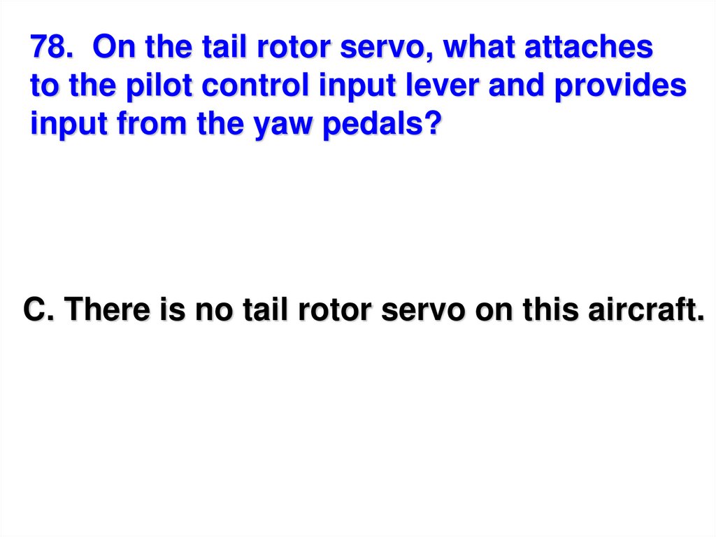 78. On the tail rotor servo, what attachesto the pilot control input lever and provides