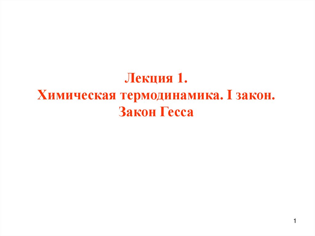 Лекция 1. Химическая термодинамика. I закон. Закон Гесса