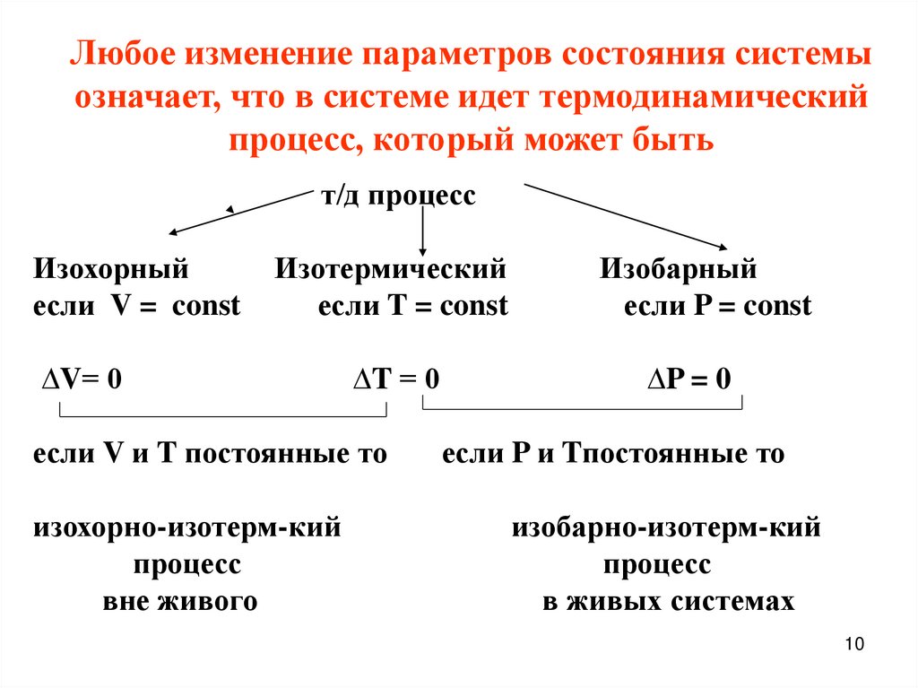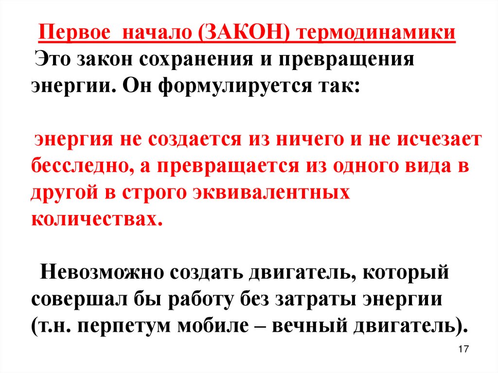 Первый закон термодинамики гласит:Изменение внутренней энергии системы происходит за счет