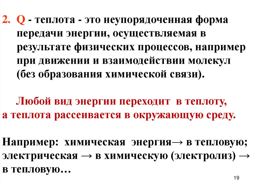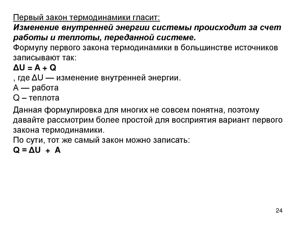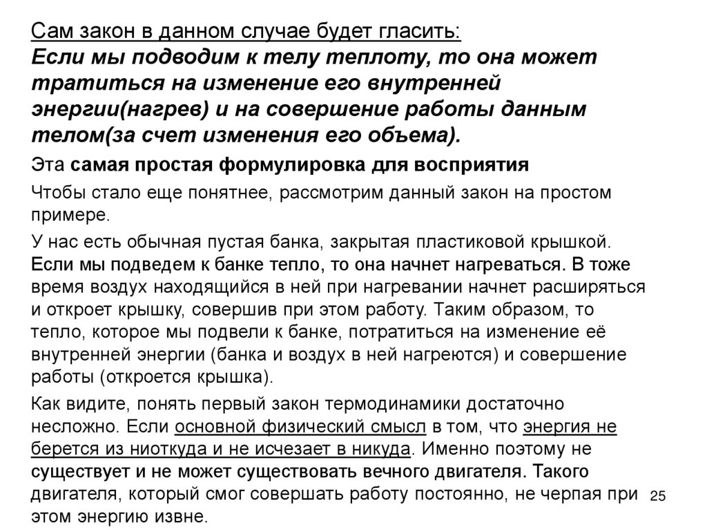 Сам закон в данном случае будет гласить:Если мы подводим к телу теплоту, то она может