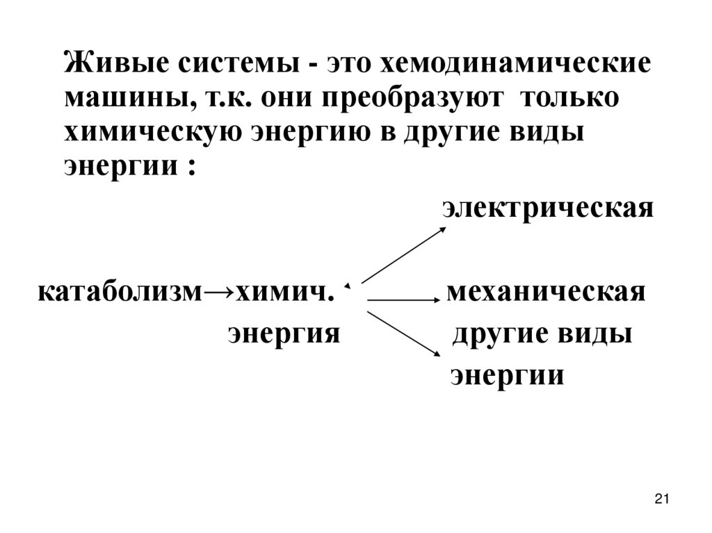Живые системы - это хемодинамическиемашины, т.к. они преобразуют только