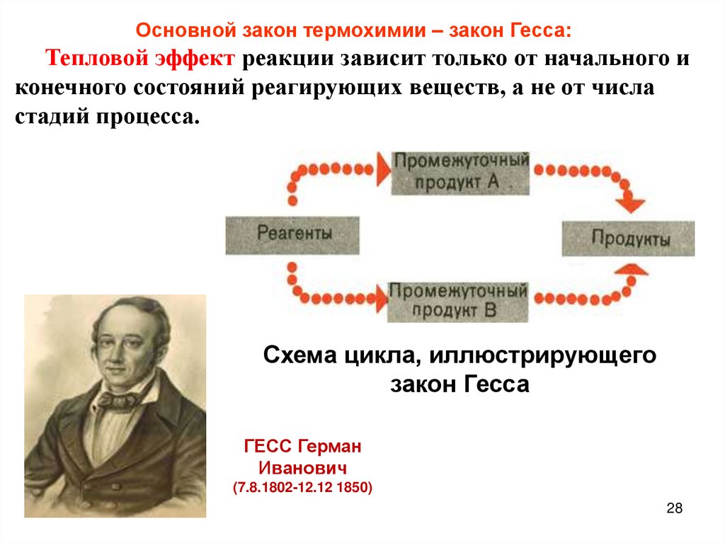 Основной закон термохимии – закон Гесса:Тепловой эффект реакции зависит только от начального и