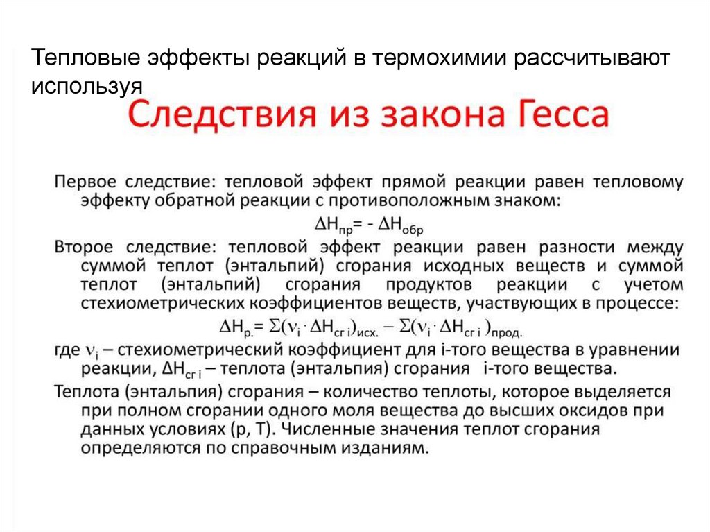 Тепловые эффекты реакций в термохимии рассчитываютиспользуя