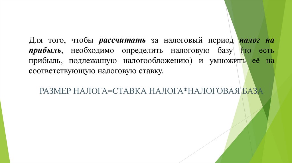 Для того, чтобы рассчитать за налоговый период налог наприбыль, необходимо определить налоговую базу (то есть