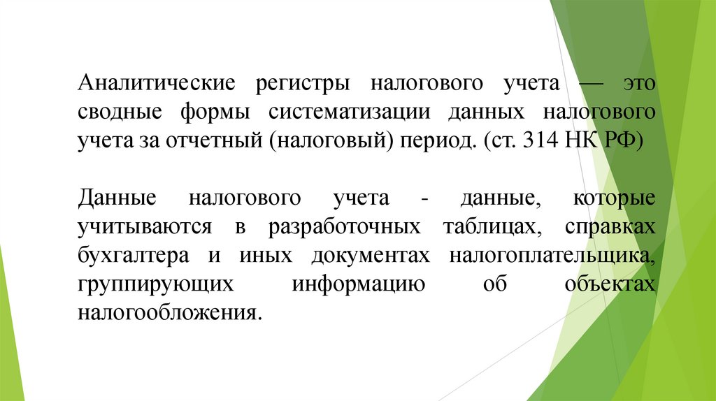 учета за отчетный (налоговый) период. (ст. 314 НК РФ)