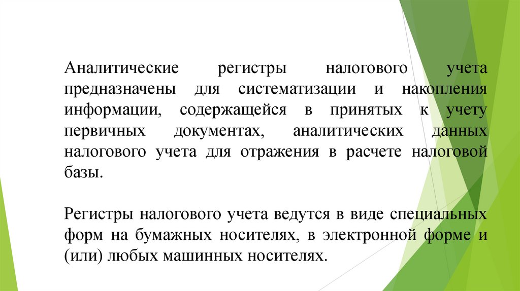 Аналитические регистры налогового учета — этосводные формы систематизации данных налогового