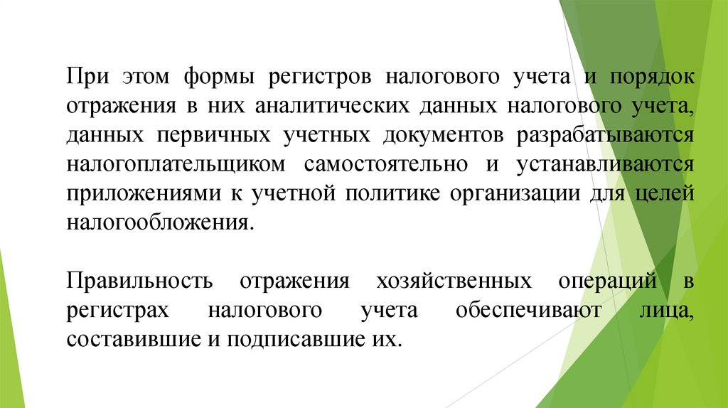 При этом формы регистров налогового учета и порядокотражения в них аналитических данных налогового учета,