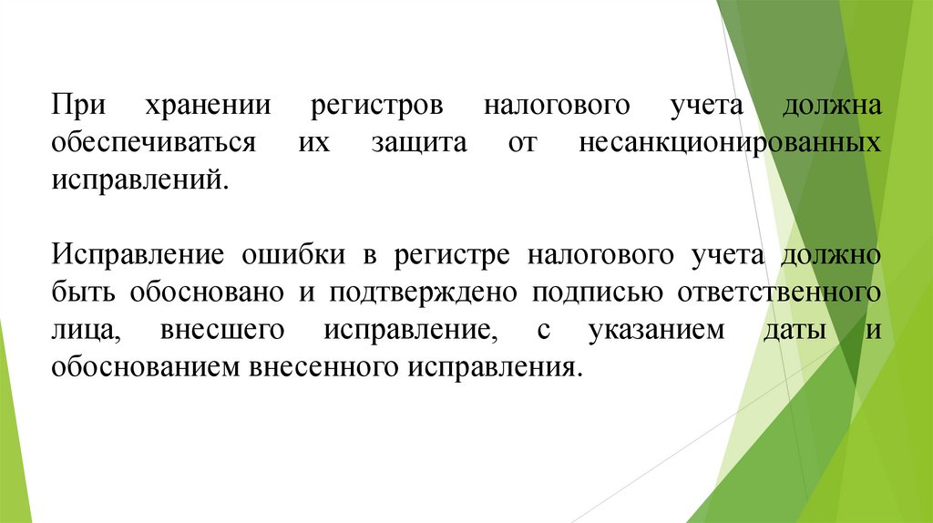 При хранении регистров налогового учета должнаобеспечиваться их защита от несанкционированных