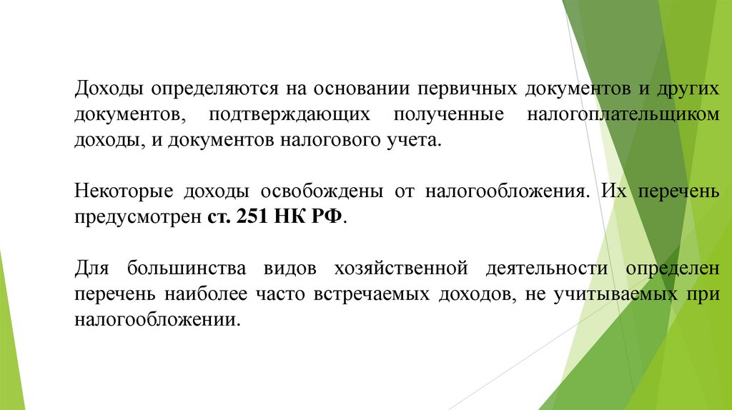 Доходы определяются на основании первичных документов и другихдокументов, подтверждающих полученные налогоплательщиком
