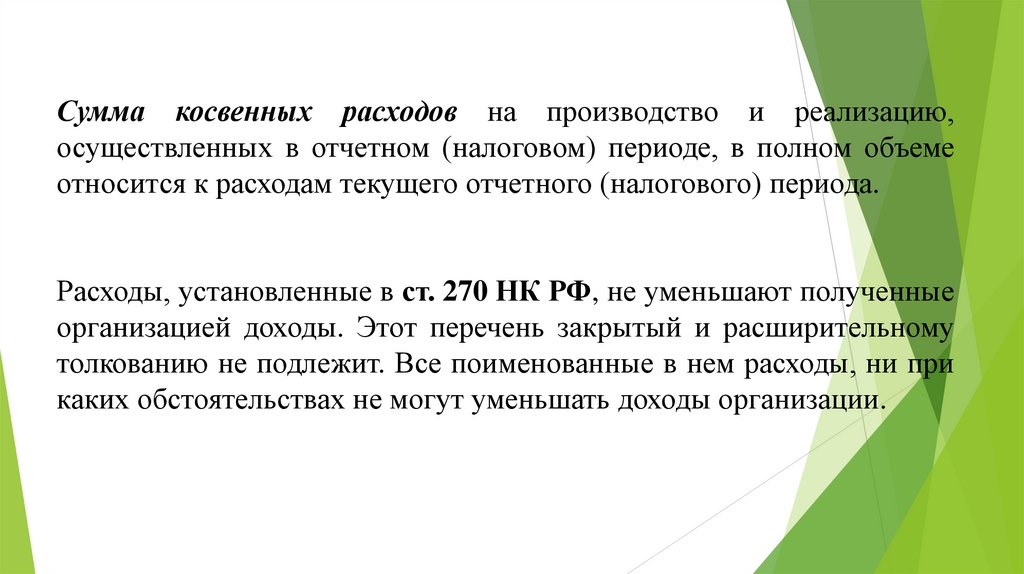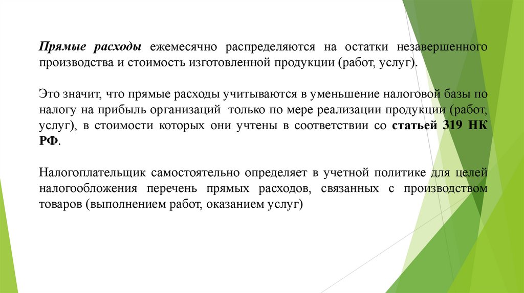 Это значит, что прямые расходы учитываются в уменьшение налоговой базы по