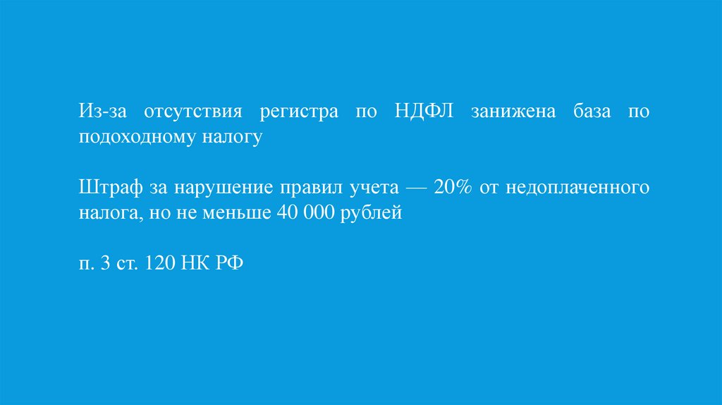 Из-за отсутствия регистра по НДФЛ занижена база поподоходному налогу