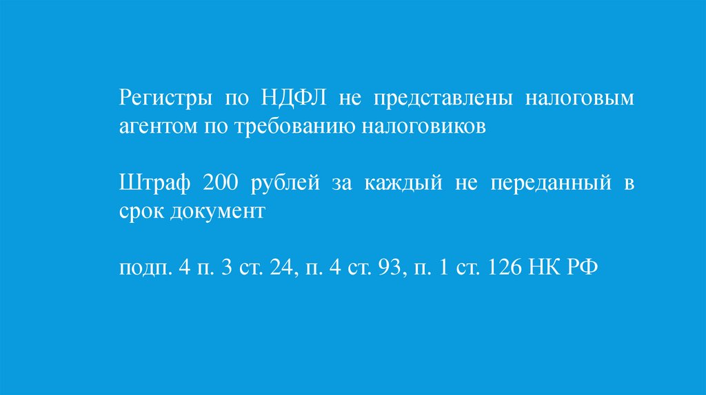 Регистры по НДФЛ не представлены налоговымагентом по требованию налоговиков