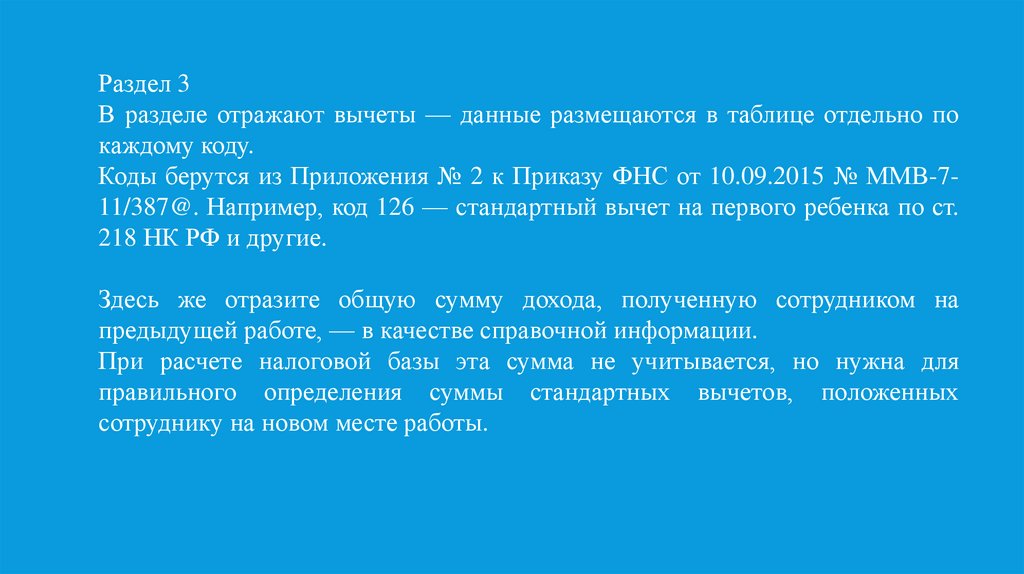 Раздел 3В разделе отражают вычеты — данные размещаются в таблице отдельно по