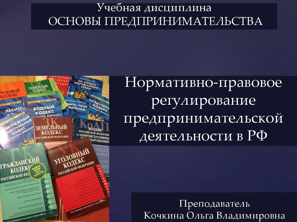 1. Нормативно-правовое регулирование предпринимательской деятельности в РФ