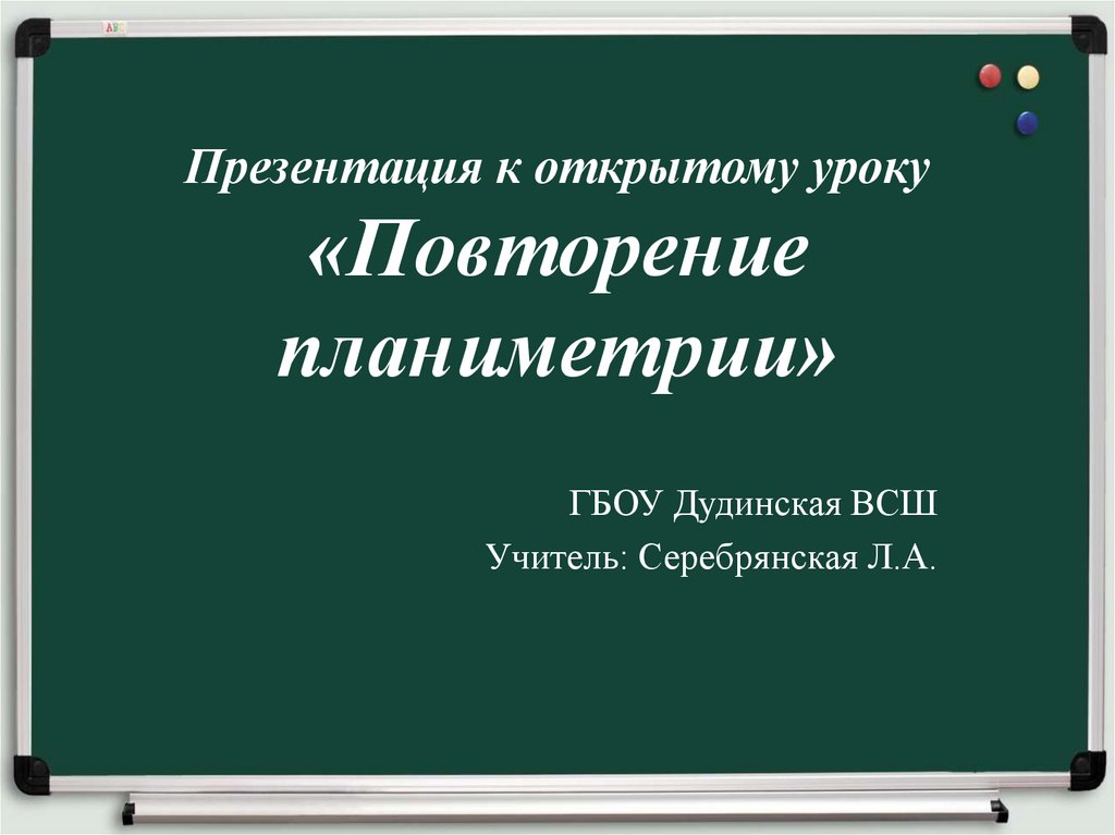 1. Презентация к открытому уроку «Повторение планиметрии»