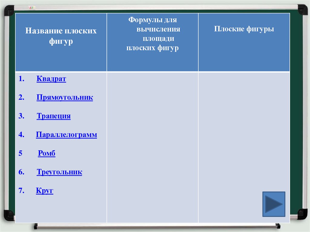 Площадь квадрата равна квадрату его стороны5. Прямоугольник