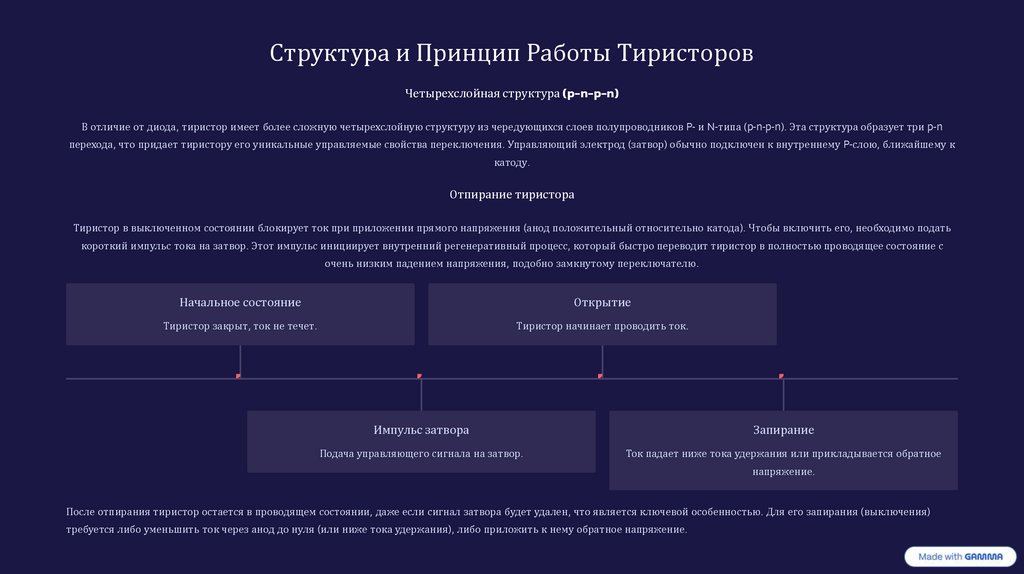 Это свойство "фиксации" делает тиристоры идеальными для управления большими токами и напряжениями, особенно в