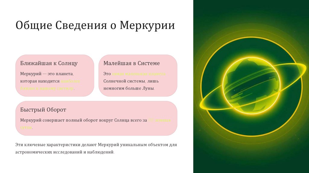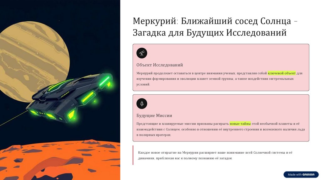 Меркурий: Ближайший сосед Солнца Загадка для Будущих ИсследованийОбъект Исследований