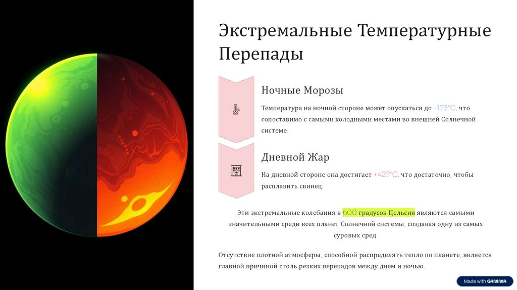 Отсутствие плотной атмосферы, способной распределять тепло по планете, является