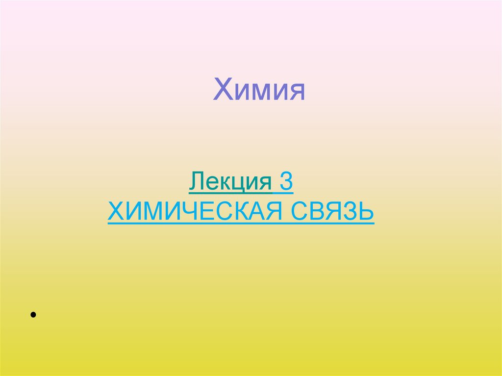 Лекция 3ХИМИЧЕСКАЯ СВЯЗЬ