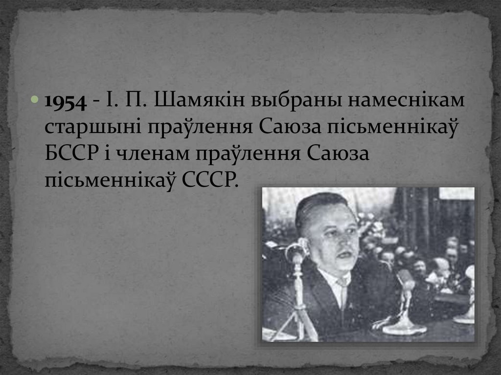 1954 - І. П. Шамякін выбраны намеснікамстаршыні праўлення Саюза пісьменнікаў