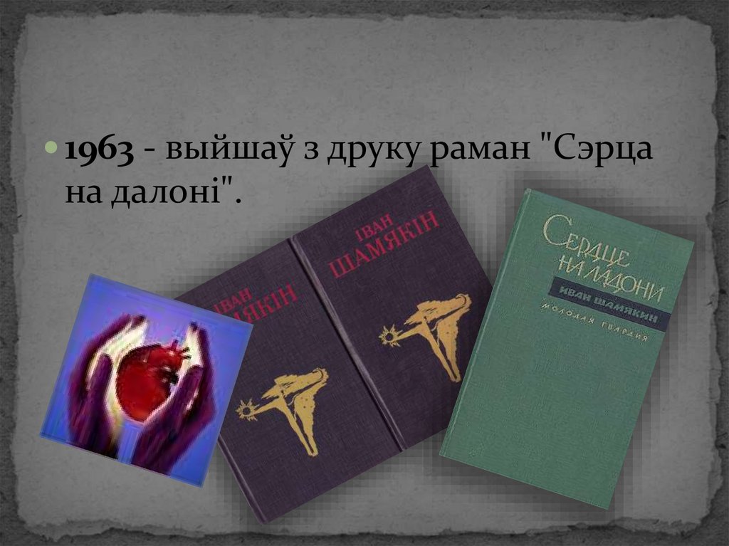 1963 - выйшаў з друку раман "Сэрцана далоні".