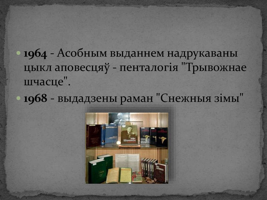 1964 - Асобным выданнем надрукаваныцыкл аповесцяў - пенталогія "Трывожнае