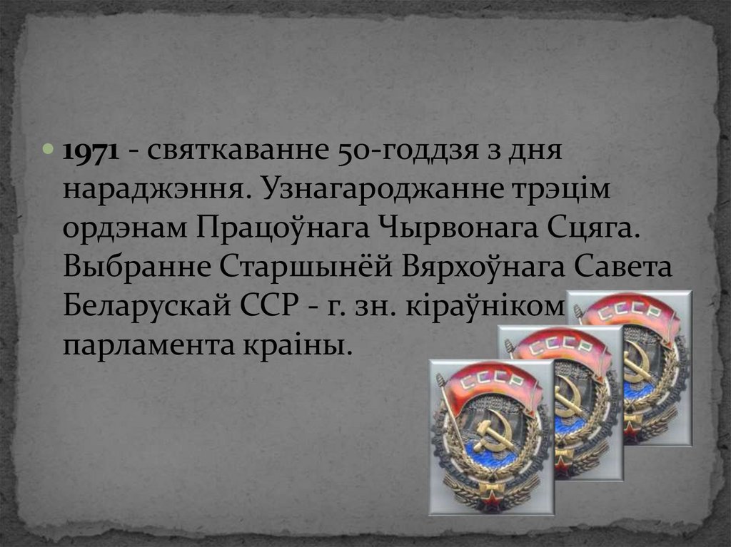 1971 - святкаванне 50-годдзя з днянараджэння. Узнагароджанне трэцім