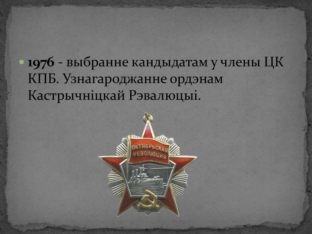 1976 - выбранне кандыдатам у члены ЦККПБ. Узнагароджанне ордэнам