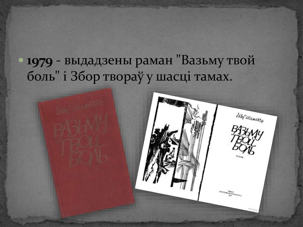 1979 - выдадзены раман "Вазьму твойболь" і Збор твораў у шасці тамах.