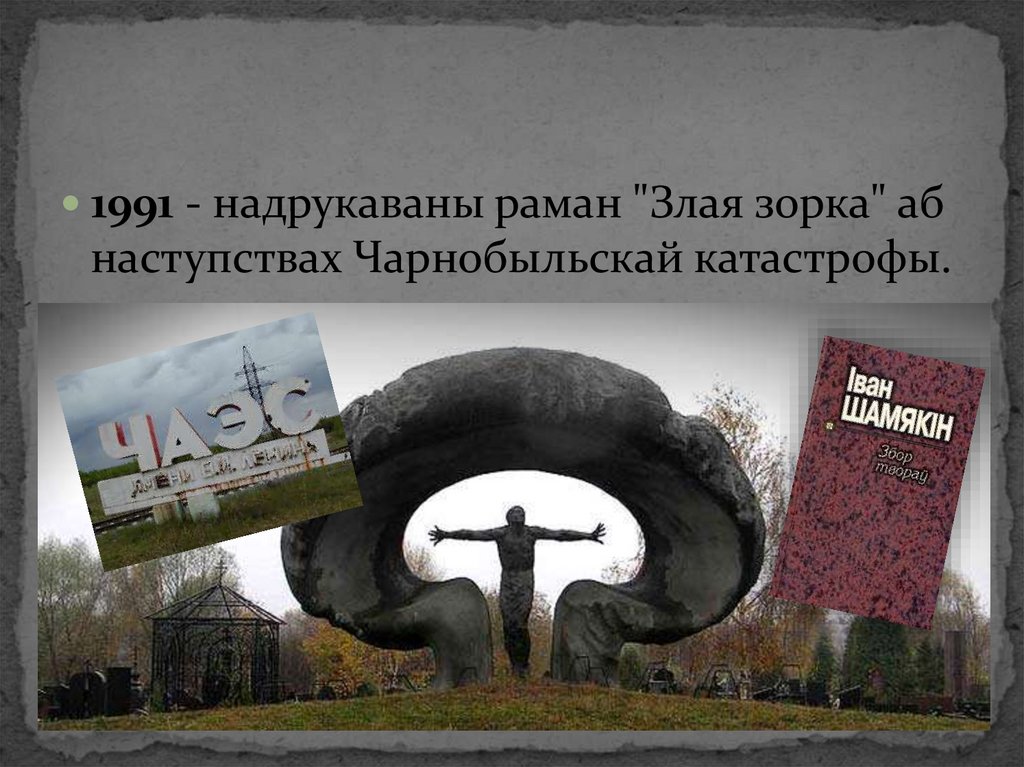 1991 - надрукаваны раман "Злая зорка" абнаступствах Чарнобыльскай катастрофы.