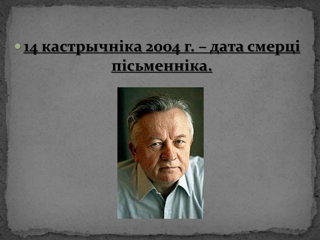 14 кастрычніка 2004 г. – дата смерціпісьменніка.