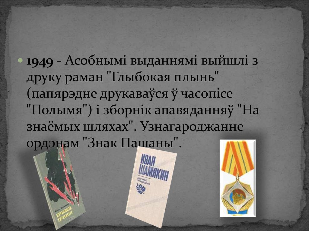 1949 - Асобнымі выданнямі выйшлі здруку раман "Глыбокая плынь"