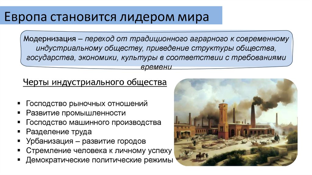 Европа становится лидером мираМодернизация – переход от традиционного аграрного к современному