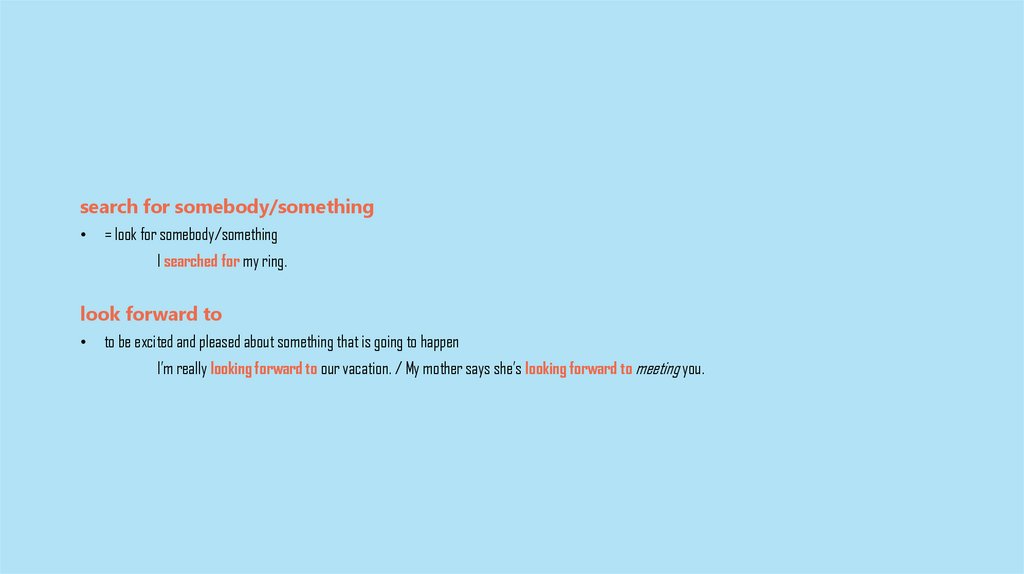 I’m looking for Steve – have you seen him? / Detectives are still looking for the escaped prisoner. / He is looking for his keys.