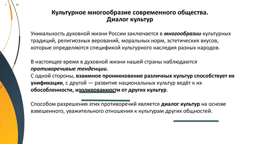 Культурное многообразие современного общества.Диалог культур
