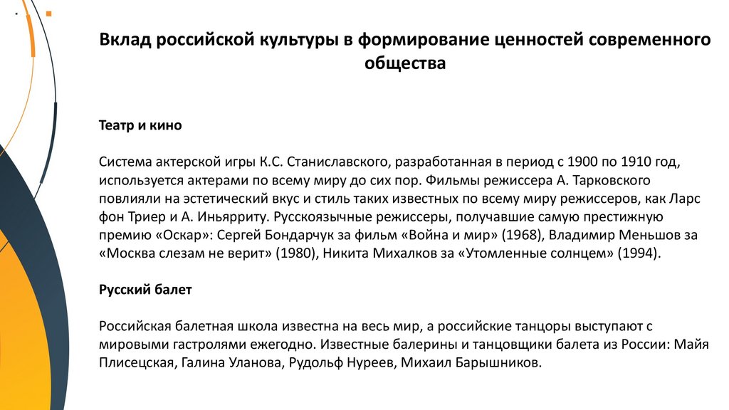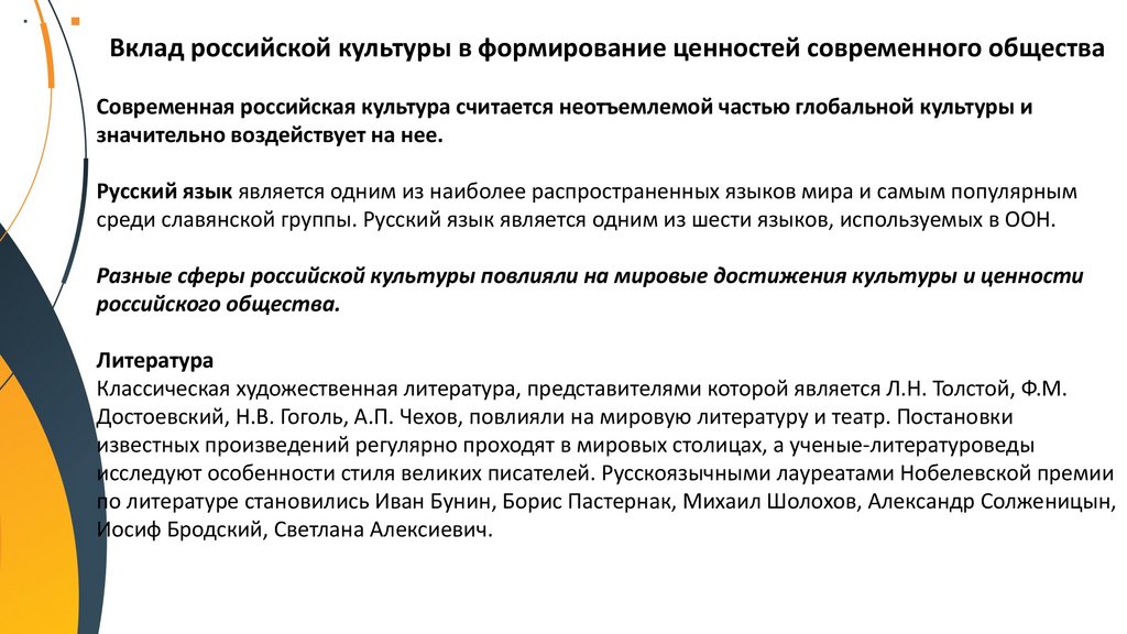 Вклад российской культуры в формирование ценностей современногообщества