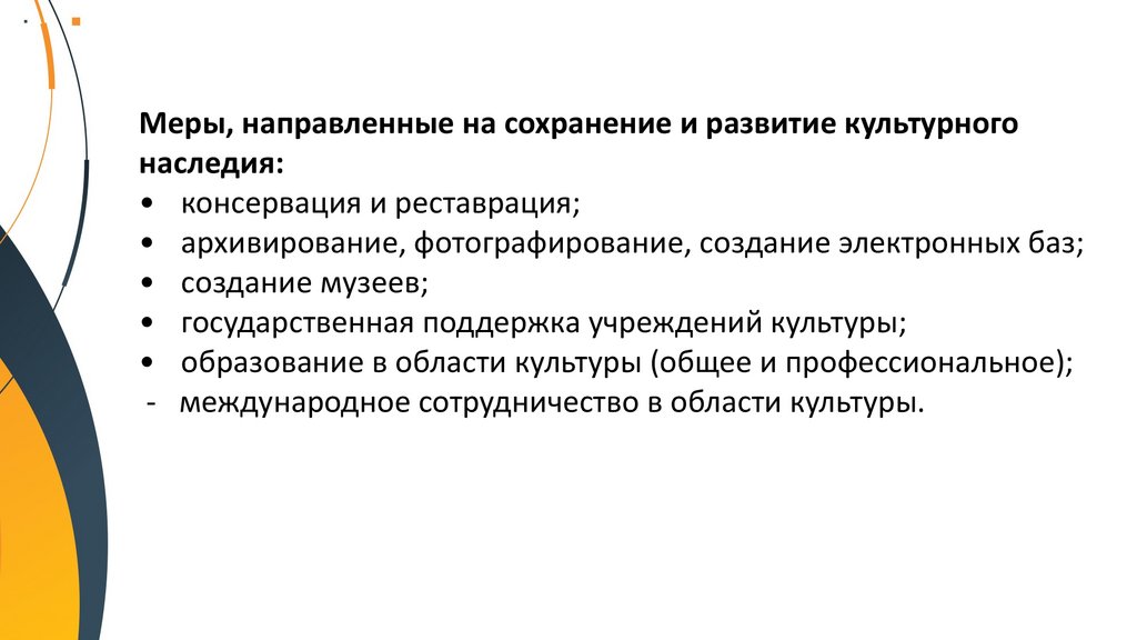 Меры, направленные на сохранение и развитие культурногонаследия: