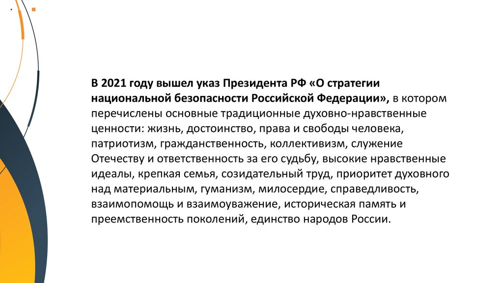 В 2021 году вышел указ Президента РФ «О стратегиинациональной безопасности Российской Федерации», в котором